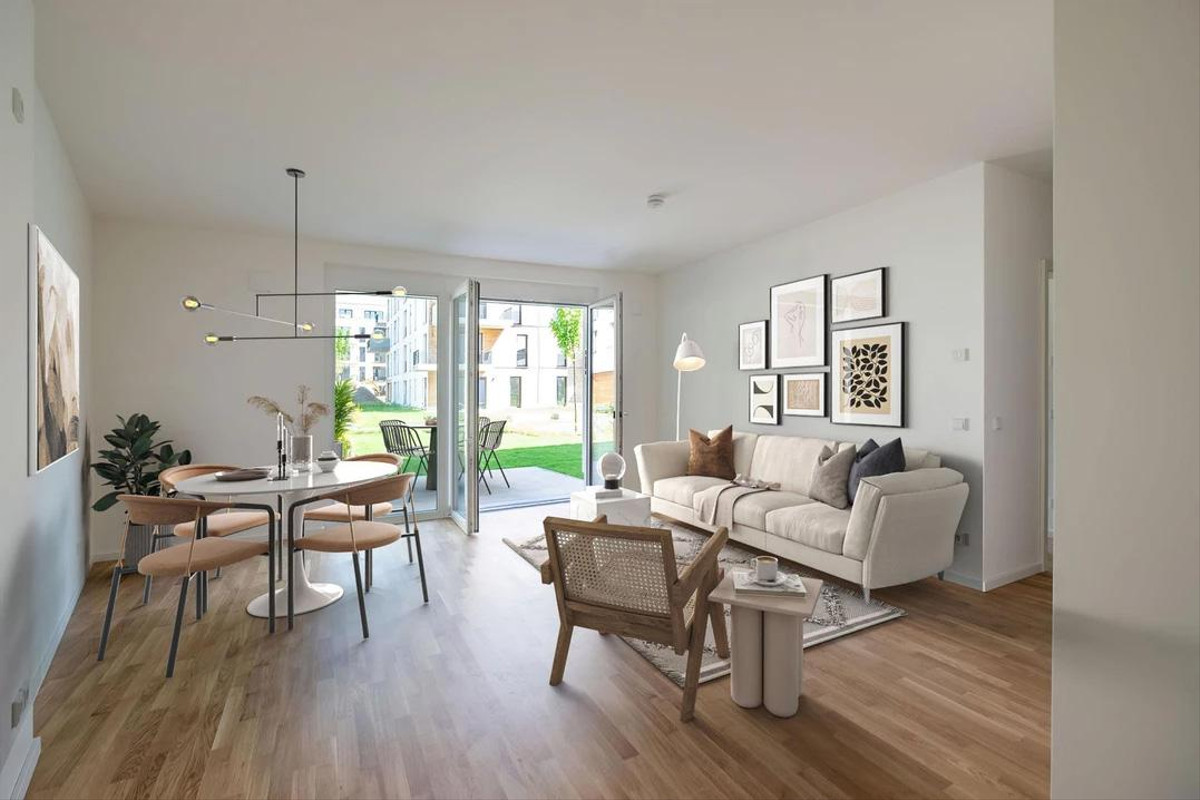 A special highlight: the ground floor apartments have private gardens with plenty of space – ideal for playing, relaxing or gardening.