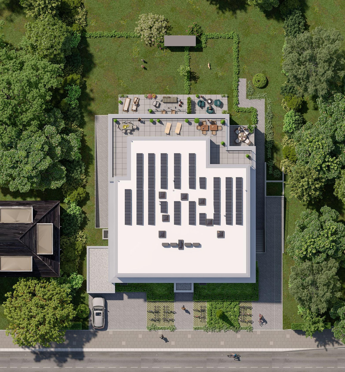 Die Architektursprache bewusst historisierend und damit neoklassizistisch gewählt, mit Intarsien an den klaren Fassaden, zurückspringendem Staffelgeschoss, ausgesuchten, anthrazitfarbenen, überwiegend bodentiefen Fenster- Türanlagen, respektablen Sonnenbalkonen in den Bel-Etagen, weitläufige Dachterrassen an den Penthäusern und wunderbaren Privatgärten an den entsprechenden Erdgeschosswohnungen – einladend und beindruckend.