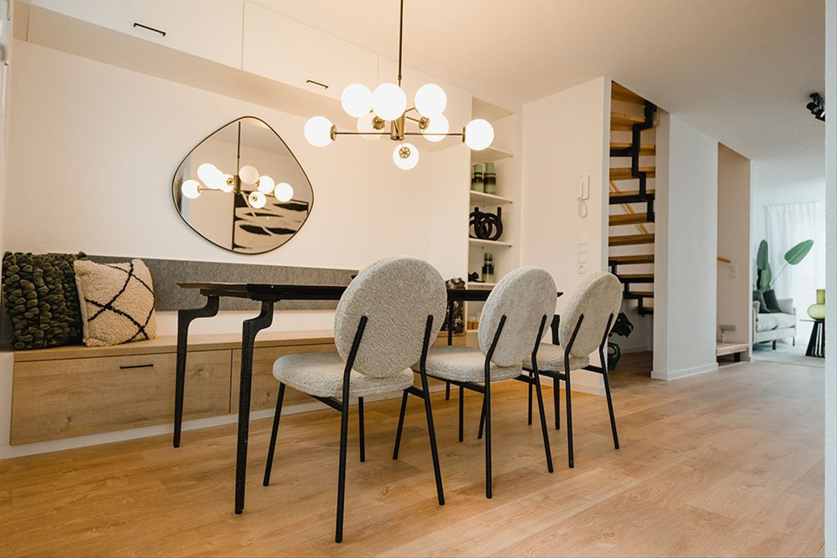 Your new home is located in the center of town and consists of a total of 17 houses. The terraced houses with fully equipped bathrooms, floor coverings and painting work (ground floor and upper floor) have living areas from 110 to 137 m² with different floor plans for all requirements.