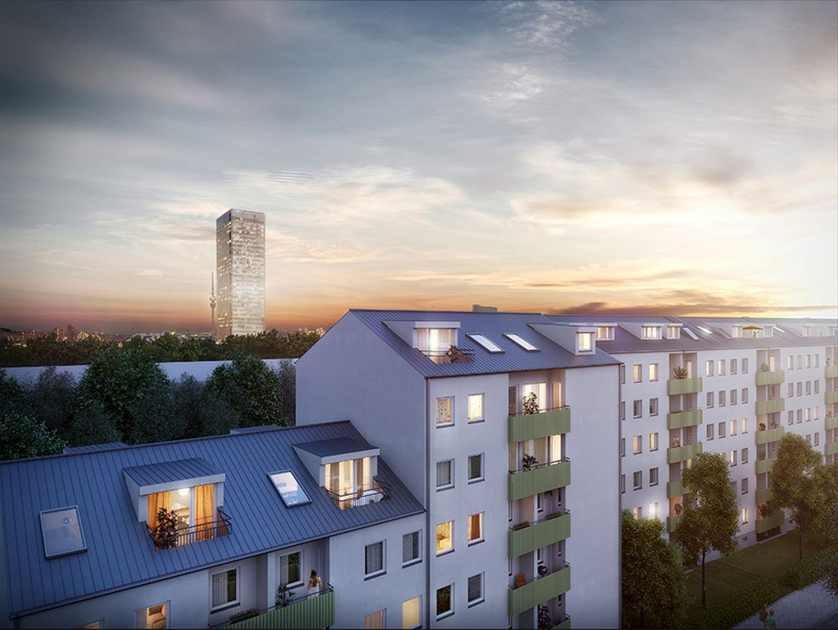 - 14 neue Dachgeschosswohnungen & 2 zusätzliche Neubauwohnungen durch Aufstockung mit 1-4,5 Zimmern von ca. 36 bis 119 m²
