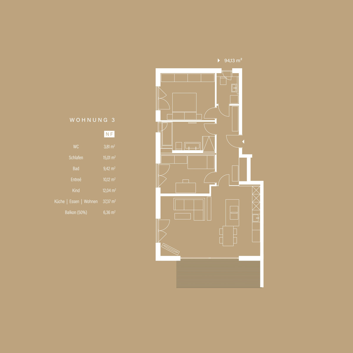 The heart of every upper floor apartment is the large, beautiful balcony that invites you to linger - here you can start your day with breakfast outside or enjoy the sunset in the evening. The balcony extends your living space outside and offers you a private oasis surrounded by lots of greenery.