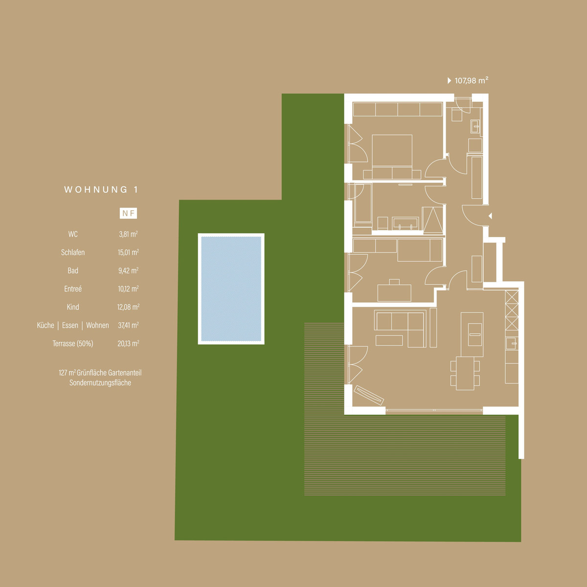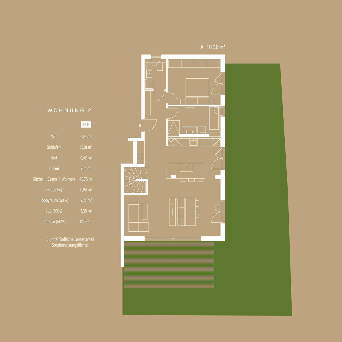 One of the two ground floor apartments also impresses with a spacious hobby room, which gives you the freedom to realize your personal interests and projects directly in your home. Whether it's a home cinema, fitness room or studio - the hobby room offers you a variety of uses and additional space.