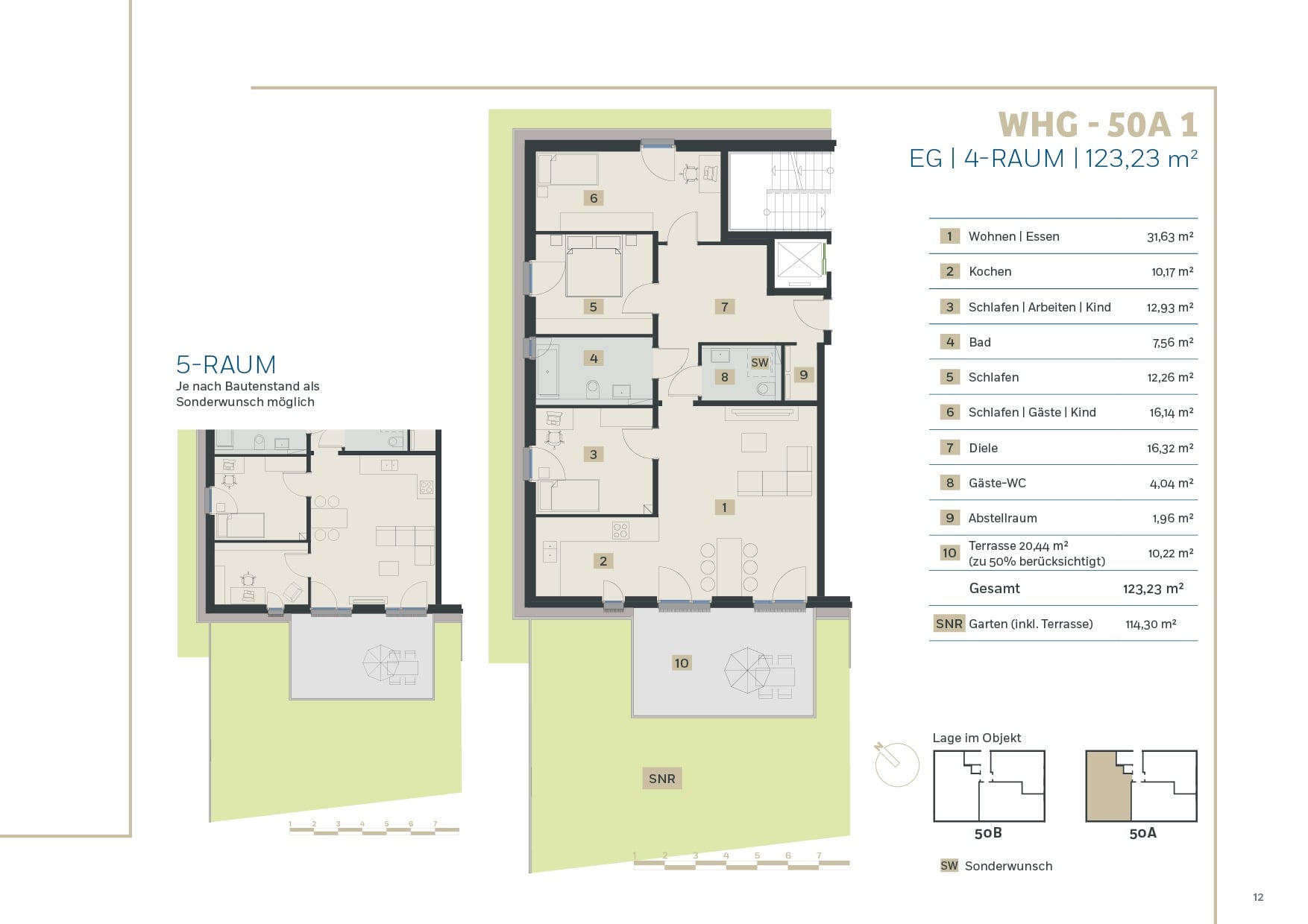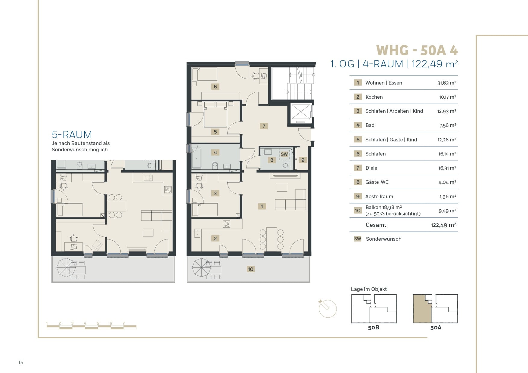 - Attraktive 3- und 4-Raum-Konzepte – 5-Raum-Konzept je nach Bautenstand als Sonderwunsch möglich
