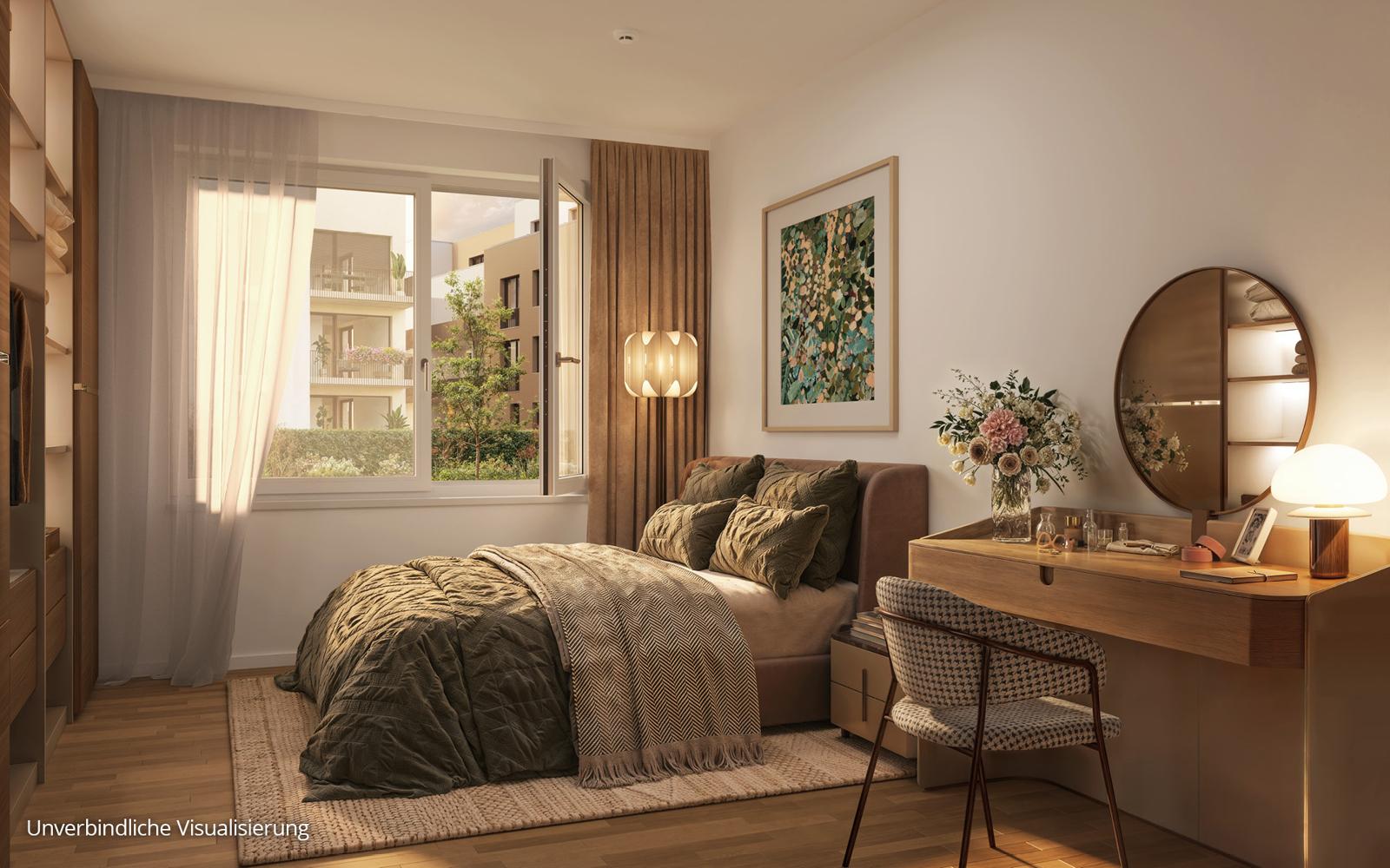 The BUWOG FLORAGÄRTEN are the first sales section of the Nuwenhöfe quarter. Directly at the forest edge, six houses with a total of 120 condominiums are being built in a park-like designed facility, embedded in gentle meadows with small paths and many trees, flowers and shrubs. The buildings are loosely arranged and radiate a pleasant lightness, as do the house facades, which create attractive light and spatial effects through coloring and clever building projections. Thus they form more than a diverse residential ensemble in the midst of extensive meadows: they form a new, perfect home for young and old – and naturally also for very young.