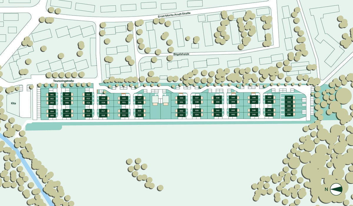 Freie Blicke über angrenzende Felder und eine ruhige Umgebung machen das neue Quartier besonders lebenswert. Familien freuen sich über die Spielstraße ohne Durchgangsverkehr, viel Grün, sichere Wege und kurze Distanzen. Für Gäste und Nachbarn gibt es zusätzliche Stellplätze entlang der Straße.