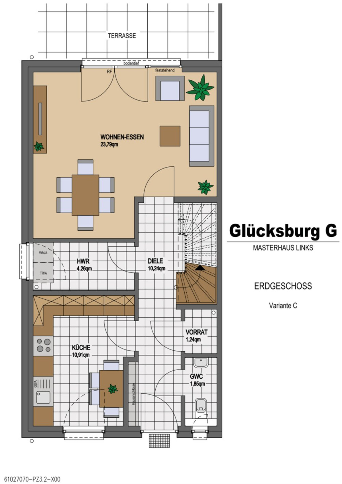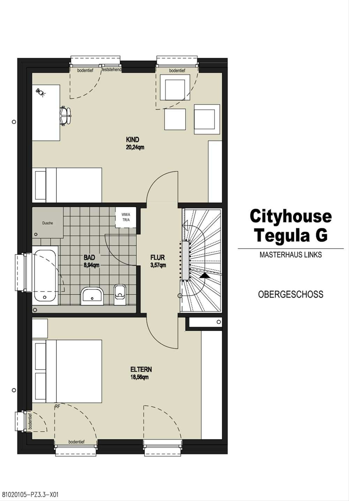 Comfortable outfittings include underfloor heating, a converted attic and a large, private terrace. Different layout variations are available. The windows are triple glazed and the bathroom upstairs receives a floor-level shower. For the car, parking space is available.