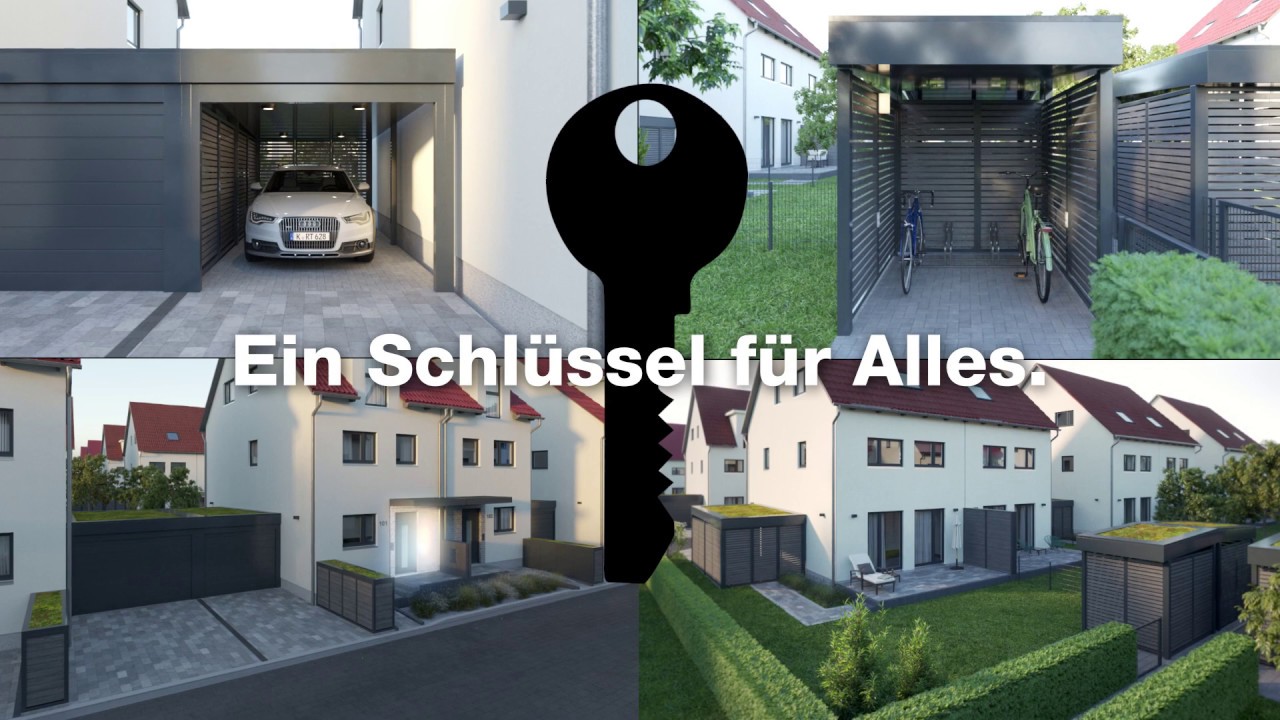 Practical: the “one-key concept” implemented here enables buyers to open their garden, patio, garage and bicycle garage doors with just one key. The residential area as a whole is also beautifully green from a bird's eye view: garages, garbage disposal areas and bicycle garages are extensively integrated into the landscape, which not only looks beautiful, but also gives nature space to breathe.