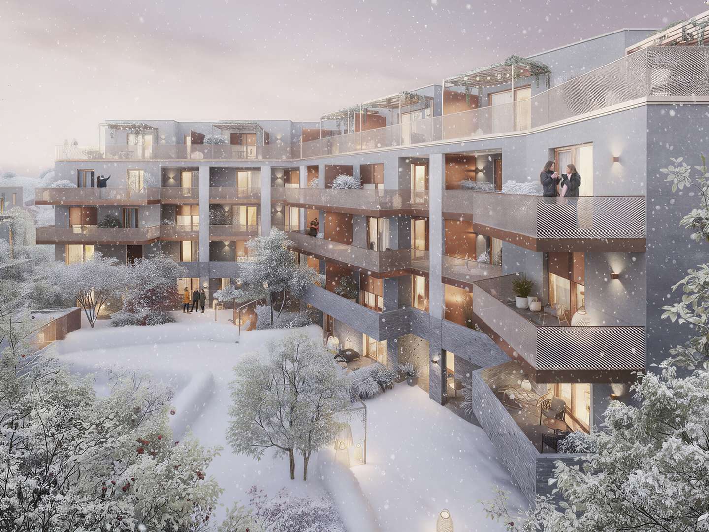 The individually designed 1- to 5-room apartments with clever floor plans and areas ranging from 29 to 110 m² offer the perfect solution for all situations. Each apartment is individually designed and most of them have terraces, private gardens, roof terraces or balconies and thus offer a direct connection to nature.