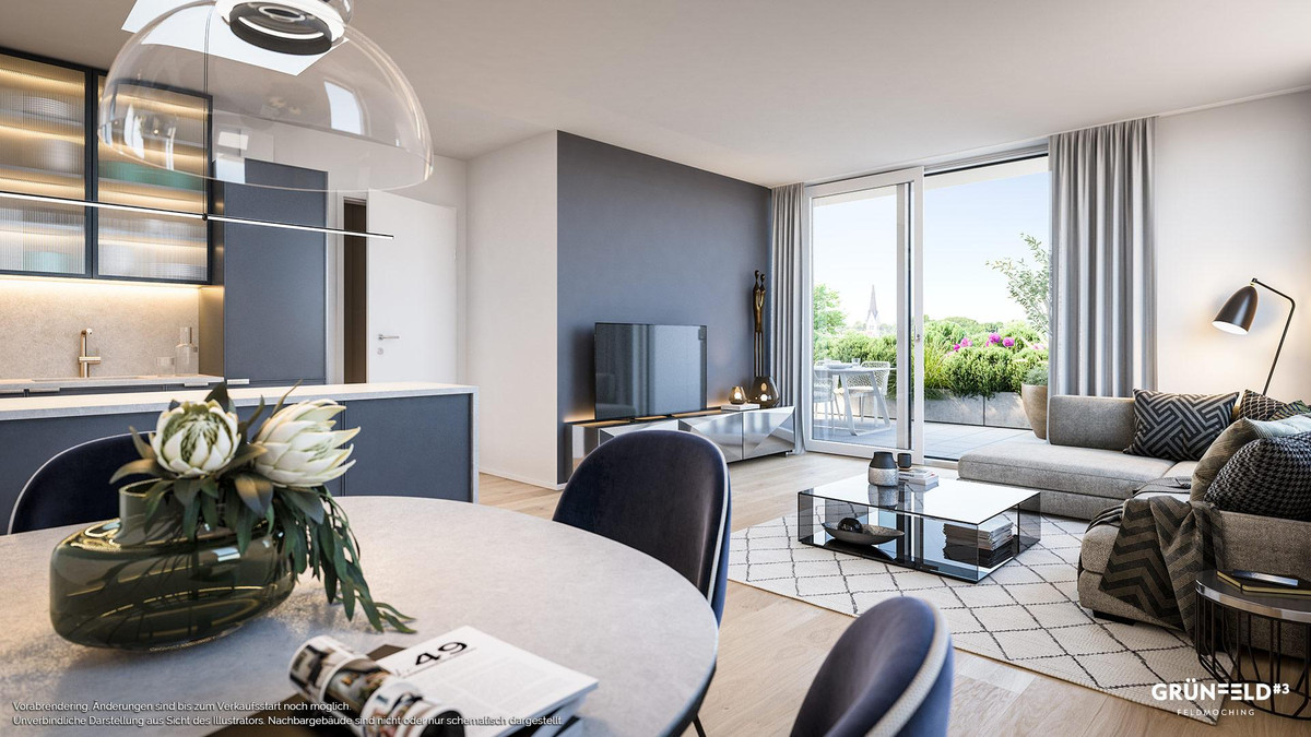 In dem neuen Wohnquartier entstehen mit GRÜNFELD #3 vielseitige 1- bis 4-Zimmer-Eigentumswohnungen mit einer hochwertigen Ausstattung und gut durchdachten Grundrissen.