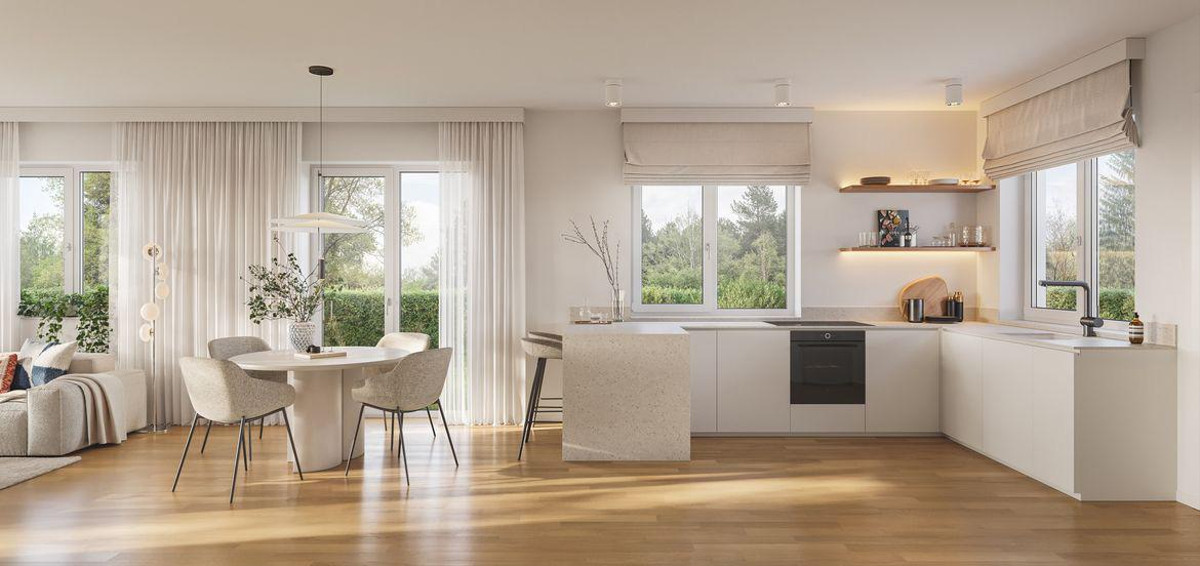 Unsere Projekte bestechen durch eine erstklassige Ausstattung, die höchsten Wohnkomfort und exzellente Qualität vereint. Jedes Objekt ist mit einer modernen Fußbodenheizung ausgestattet, die für angenehme Wärme und ein behagliches Raumklima sorgt. In den Wohnbereichen wird hochwertiges Parkett verlegt, das nicht nur optisch ansprechend ist, sondern auch durch Langlebigkeit und eine natürliche Haptik überzeugt. In den Badezimmern und Küchen kommen exklusive Fliesen zum Einsatz, die sowohl funktional als auch stilvoll sind.
