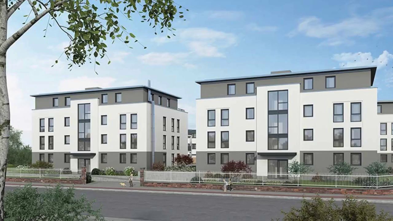 Auf dem neu entstehenden Wohnhof des ehemaligen Holz-Müller-Geländes werden auch 6 Doppelhaushälften gebaut.