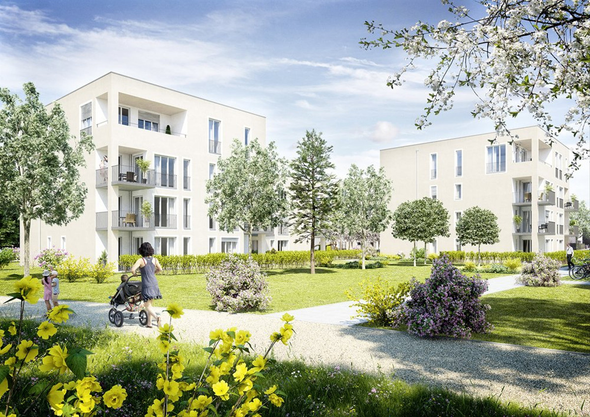 Von den 2- bis 4-Zimmer-Wohnungen bzw. den großen Dachterrassen blicken Sie entweder in den benachbarten Park oder die Freianlage des Objekts. In diesen Grünflächen genießt man den besonderen Charme der eigenen vier Wände. Die Außenanlagen mit den großzügigen Gärten sind so weitläufig gestaltet, dass Park und Wohnanlage sich scheinbar verbinden und Sie mit einem schönen Ausblick ins Grüne belohnen.
