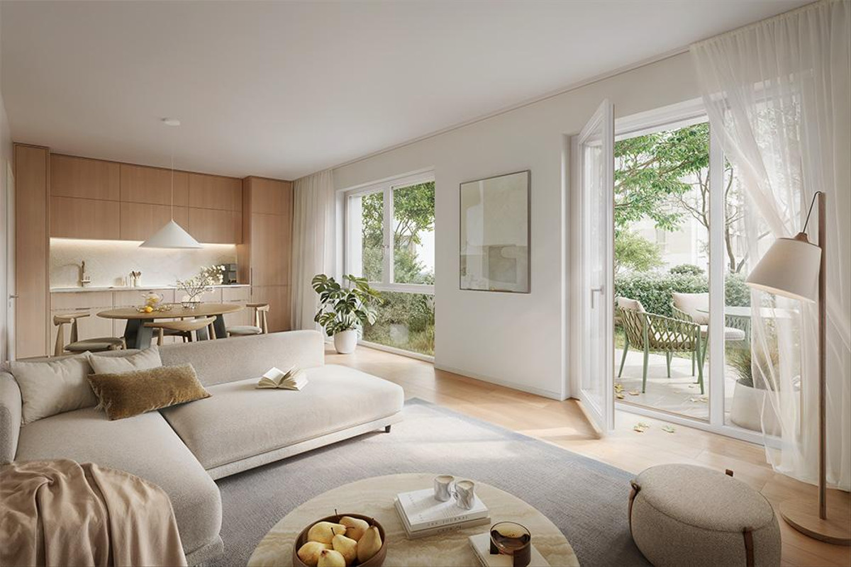 - Erdgeschosswohnungen mit privaten Gärten