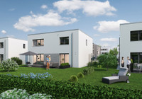 In the new quarter, a new neighborhood is being created in a quiet location in three construction phases. You have the choice between 12 detached single-family houses, 36 semi-detached houses and 9 terraced houses, all with full basements with living areas between approx. 142 and 170m². The entire development is implemented with green flat and gently sloping pent roofs. The houses in the new quarter each have garages (also with green roofs), parking spaces and their own garden. The terraced and semi-detached houses are characterized by a recessed staggered floor with a terrace.