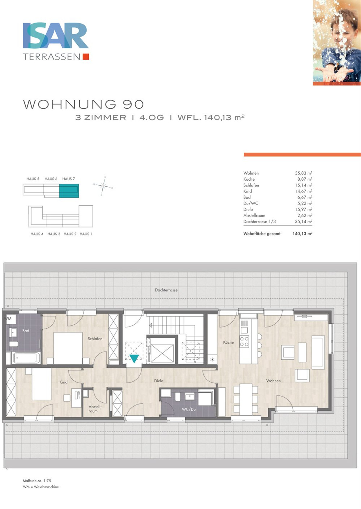 In unseren ISARTERRASSEN erwartet Sie die sonnige Seite des Wohnens: Fast alle Wohnungen sind nach Süden und Westen hin ausgerichtet.