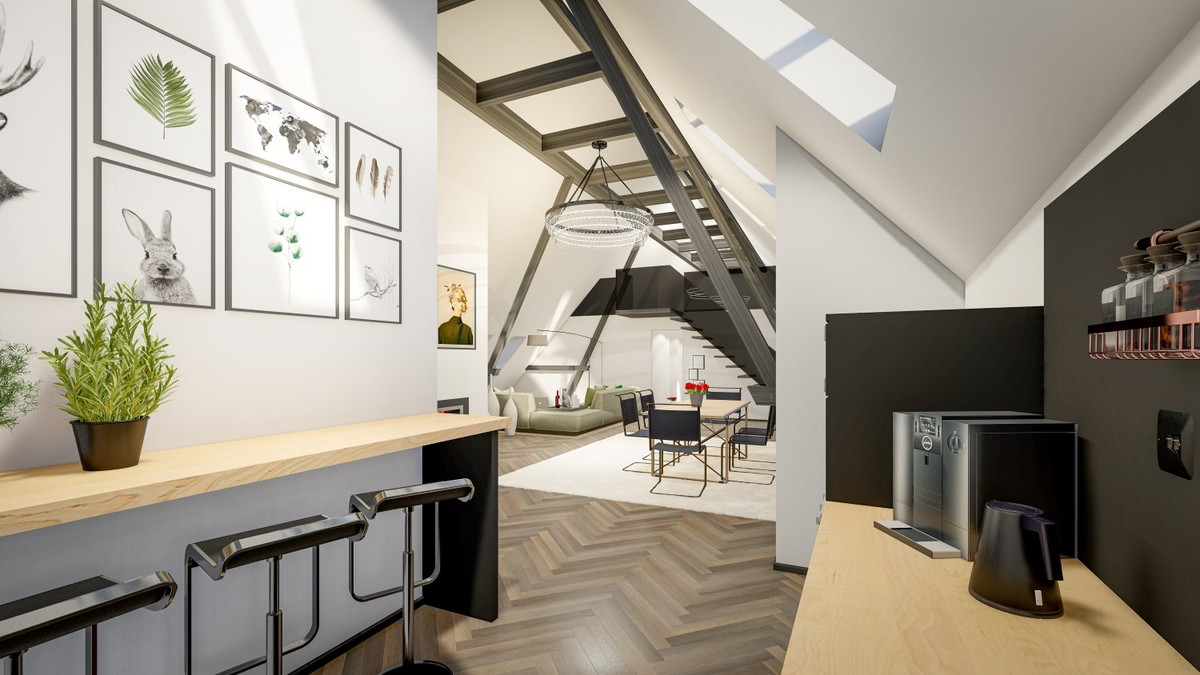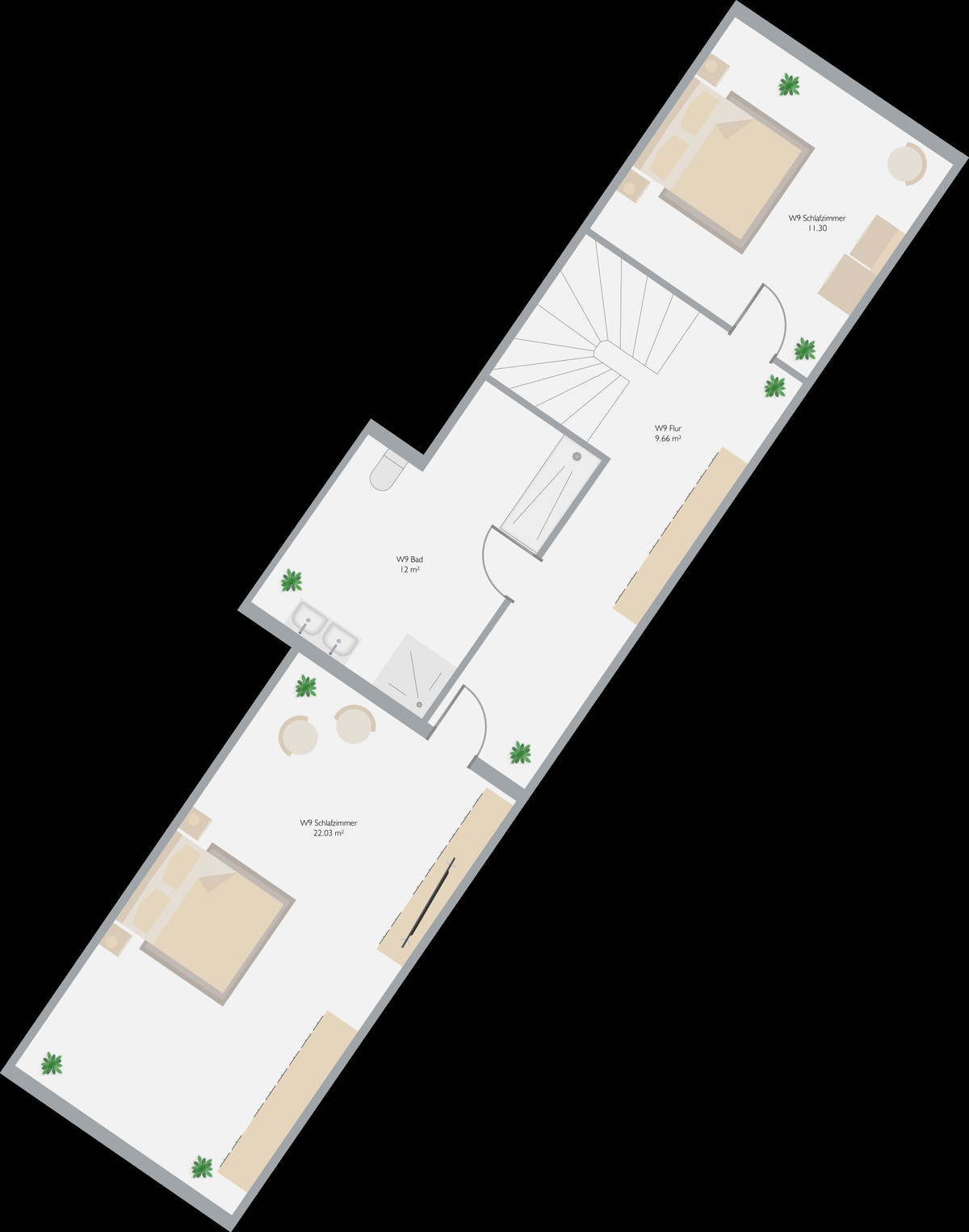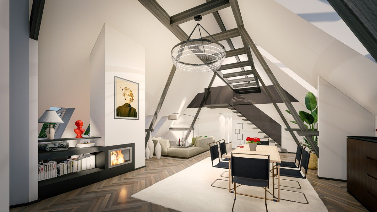 - 2 apartments on the upper floor have another 1 to 2 rooms in the loft as a maisonette apartment