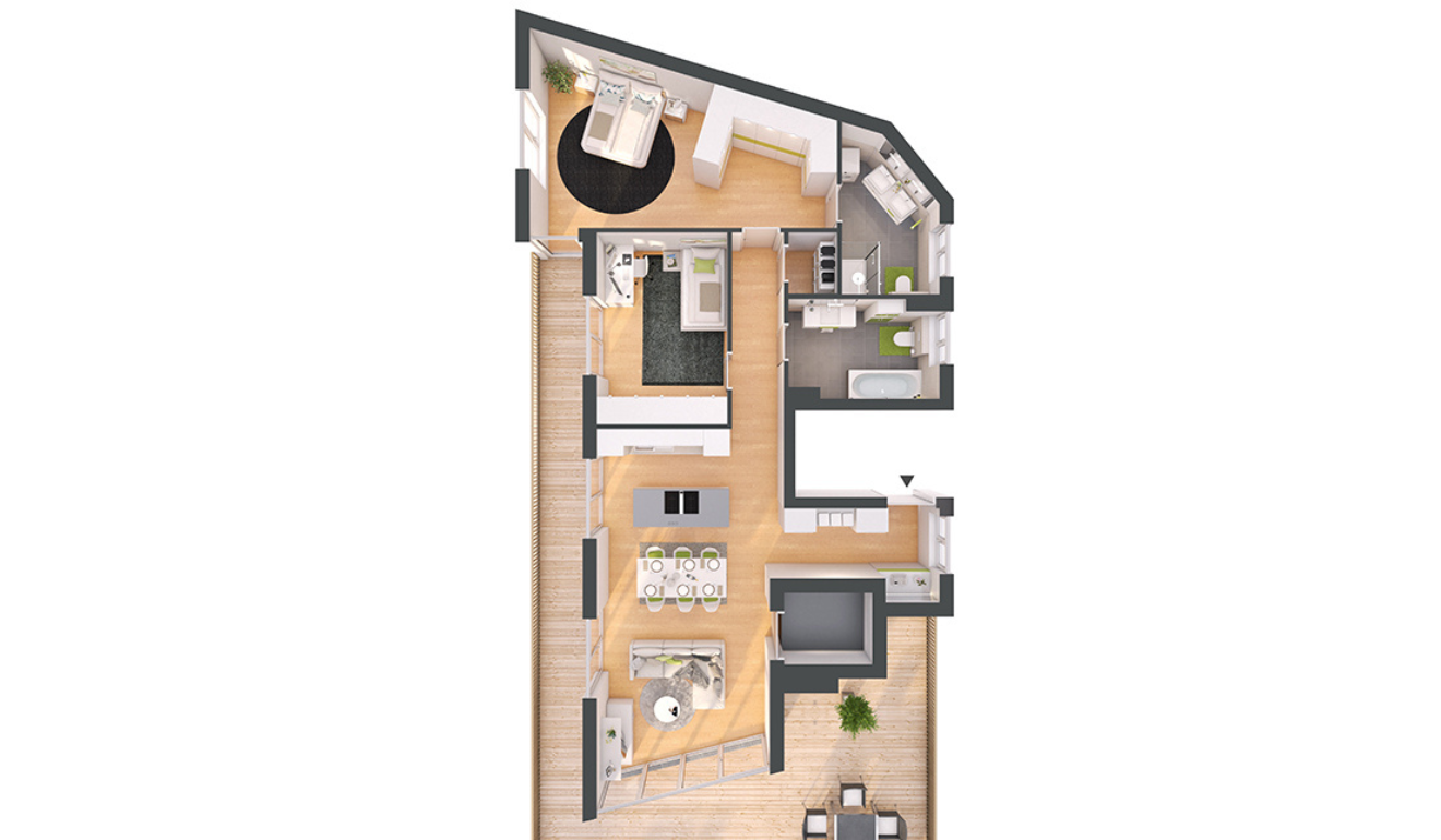 Away from the hustle and bustle of the city, you will find the beauty of the forests around your new, comfortable home. In all of our projects, it is important to us to ensure a high quality of life for future residents. Architecture, floor plans and outfitting features make your own four walls a feel-good space. Enjoy the peace and quiet and take a piece of it with you to your new home.
