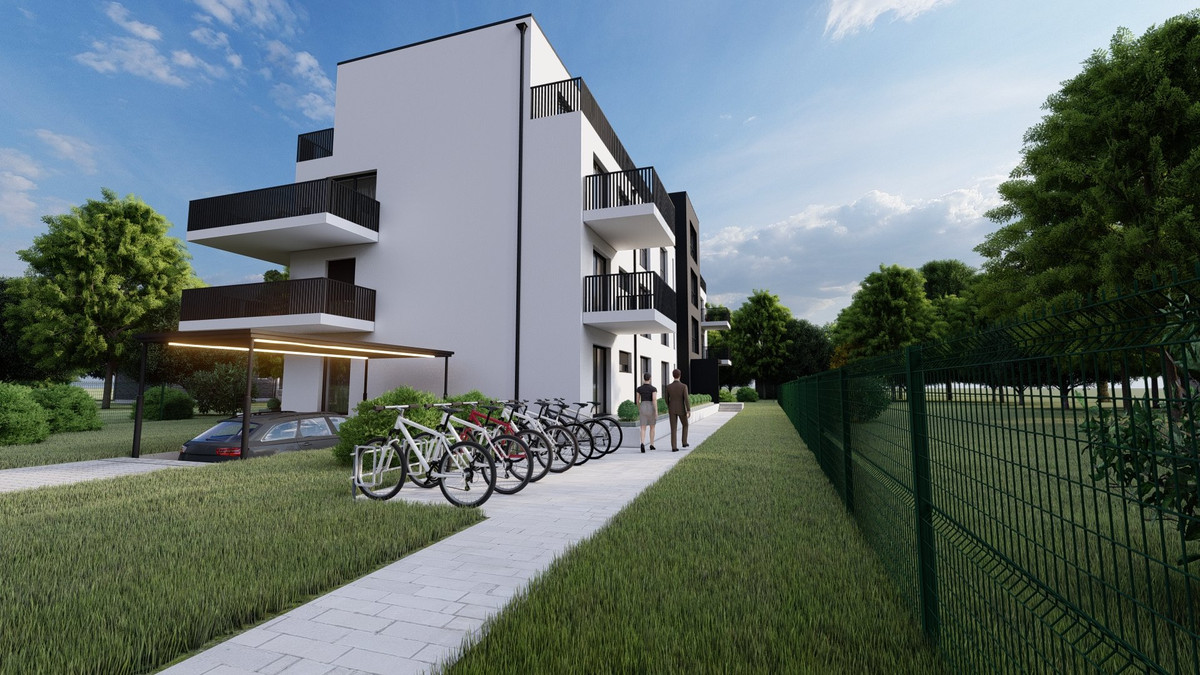 All apartments on the ground floor have a terrace and their own garden area. Each of the apartments planned for the upper floor will have at least one balcony.