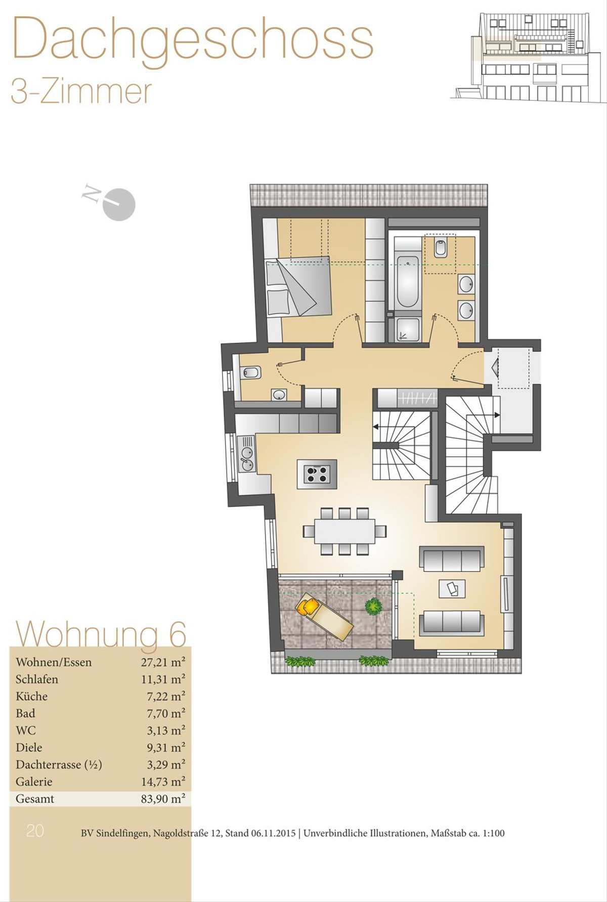 | Wohnung 6 | 1. + 2. DG | 3 Zimmer | 83,42 m² | verkauft |
