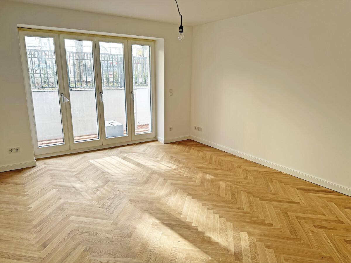 All interiors have been extensively redesigned and expanded with fine parquet floors with first-class impact sound insulation and insulating glass windows in wooden frames with the characteristic flair of an old building. Exclusive penthouse apartments are being built on the top floor. The bathrooms impress with first-class outfitting features, such as large tiles, fittings and fittings from renowned manufacturers Duravit, Hoesch and Hans Grohe. Individual wooden details create a connection between the clean lines of the bathrooms and the fine traditional details of the other rooms.