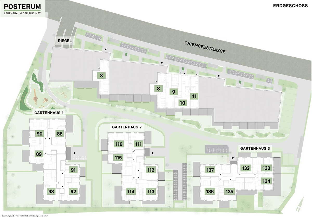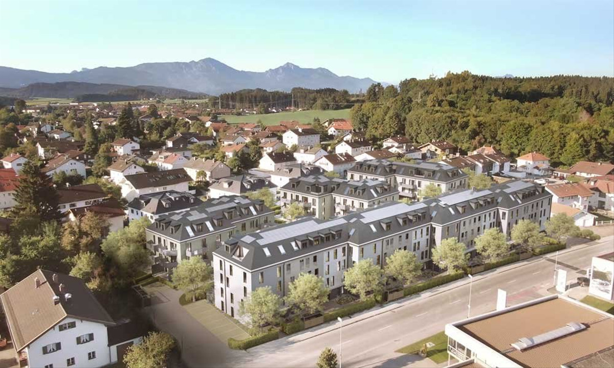 Three attractive townhouse-style villas are being built on the southern part of a spacious plot of land at Chiemseestrasse 25 in Traunstein.