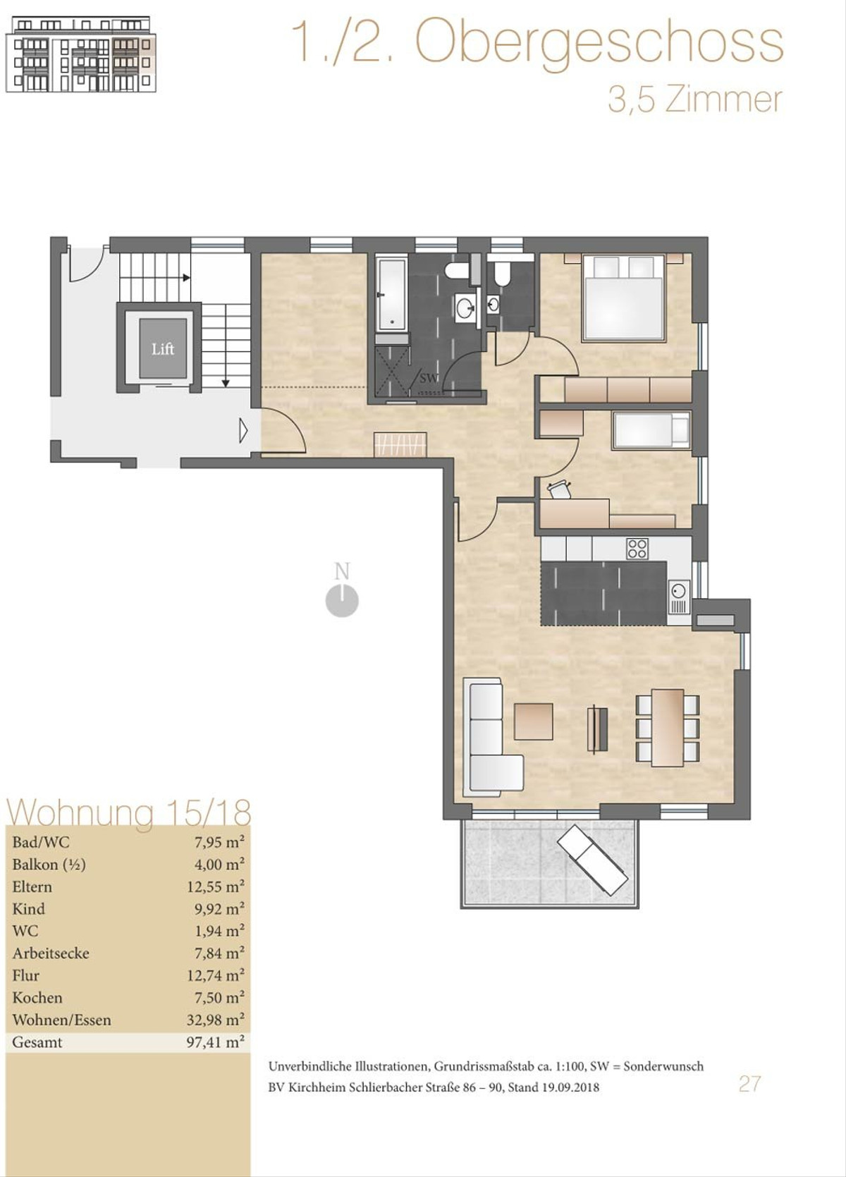 - Wohnflächen zwischen 56,92 m² bis 97,39 m²