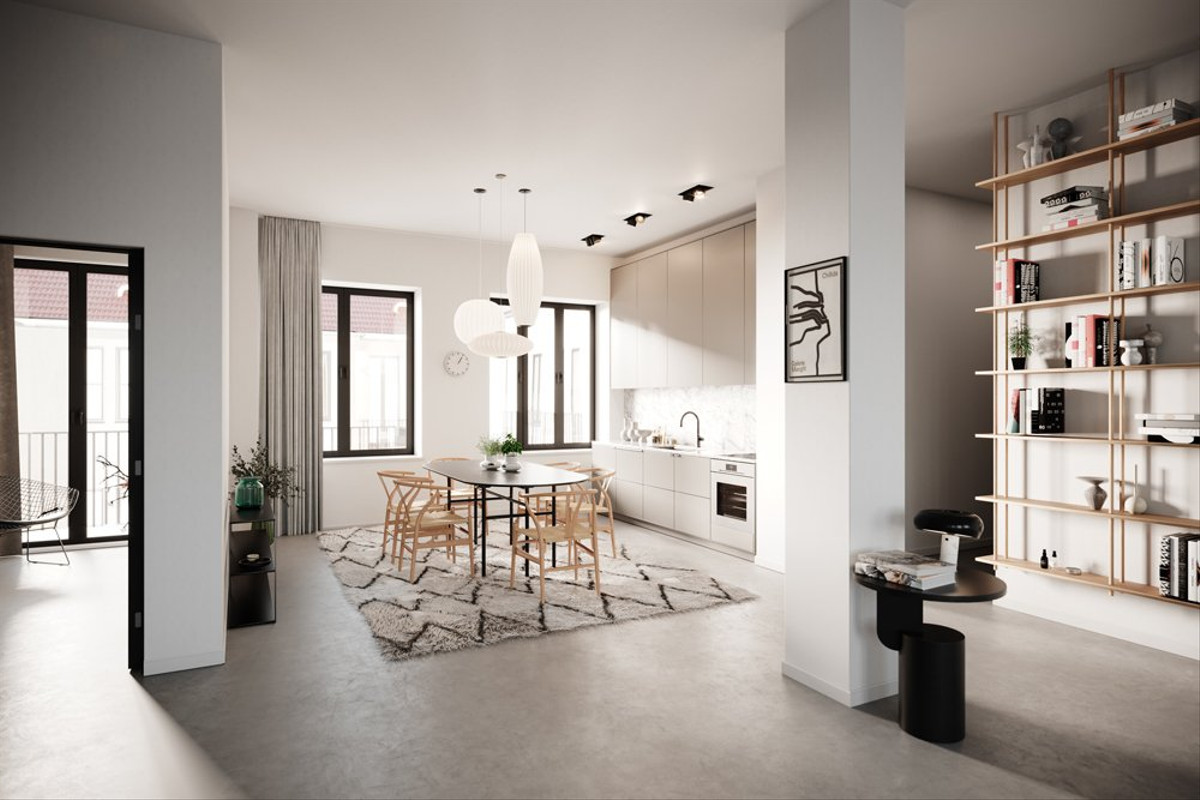 Factory flair and industrial charm can still be felt in the historic rear building. But the reigning lifestyle in these loft apartments is light, airy - and contemporary. No wonder, with ceilings 3.10 meters high, open, spacious floor plans, grey-coloured exposed screed floors and lots of glass. Another comfort plus in the lavishly renovated courtyard building is the new safety staircase alongside a barrier-free elevator.