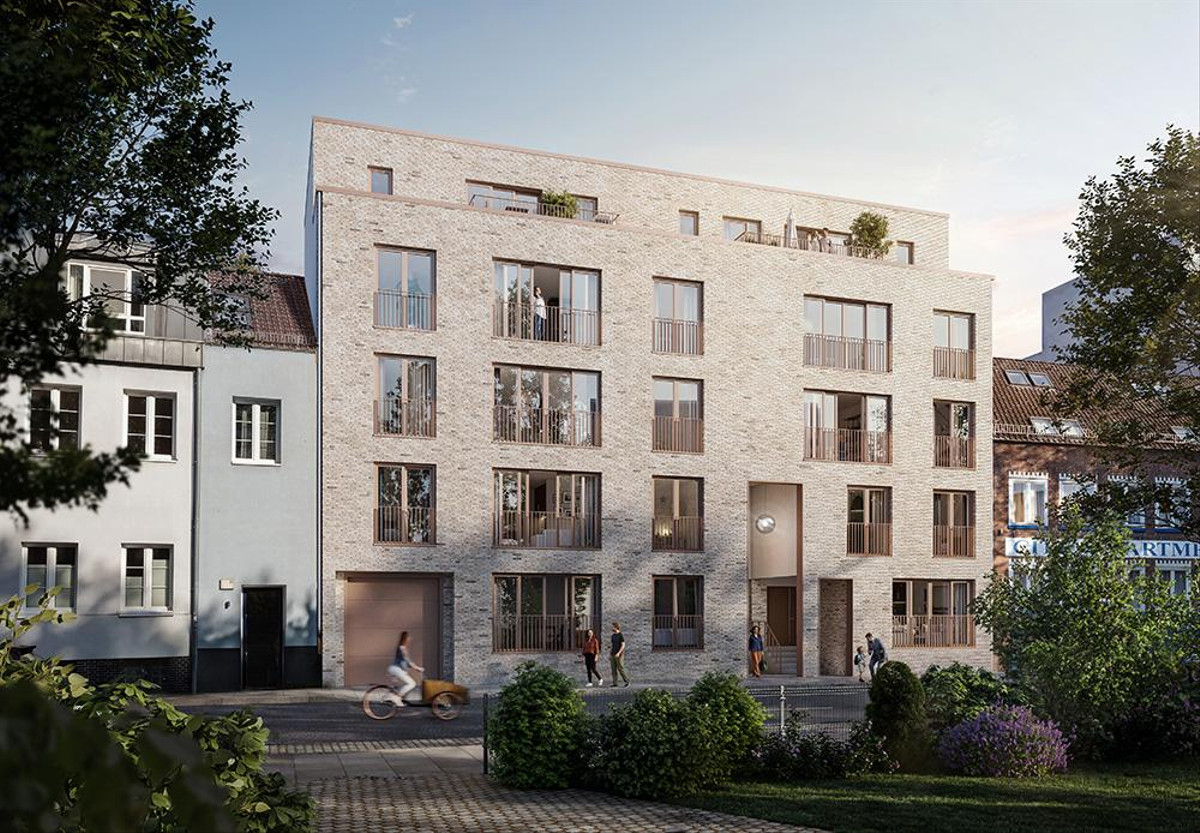 In Hamburg-Hohenfelde, an der Grenze zu St. Georg, entsteht ein Projekt, das es in dieser innerstädtischen Lage nur selten gibt: zwei Gebäude mit insgesamt 15 Wohnungen und 2 Gewerbe-Lofts – jeweils als Eigentum zu erwerben.