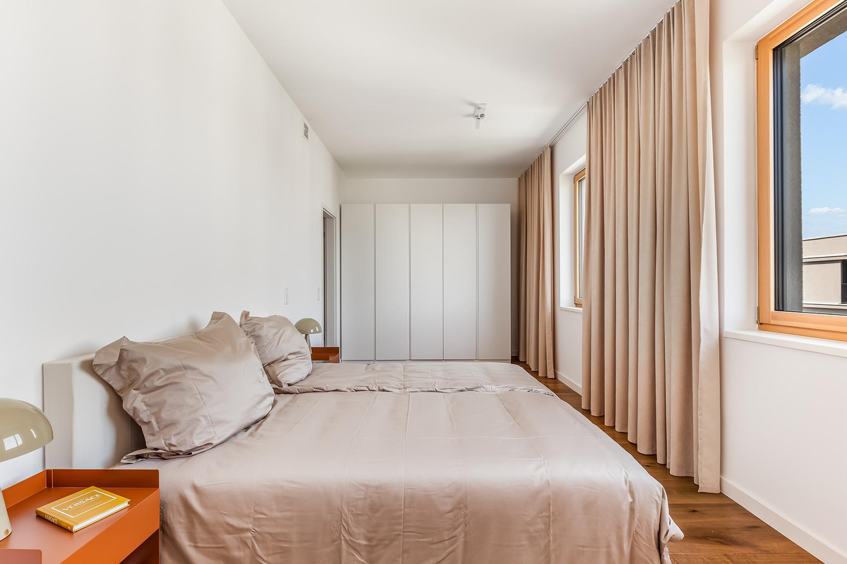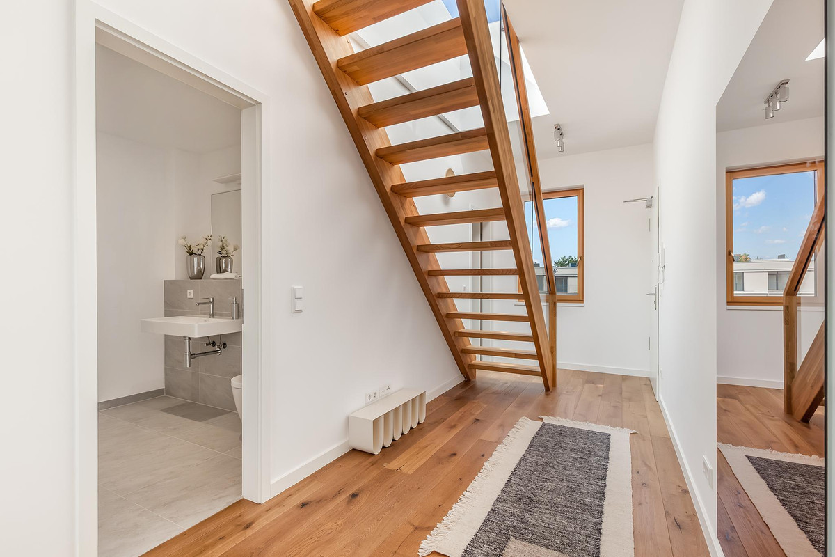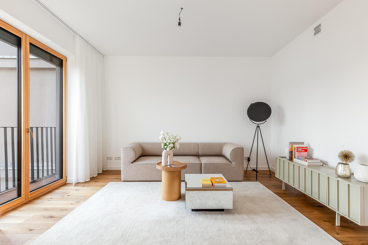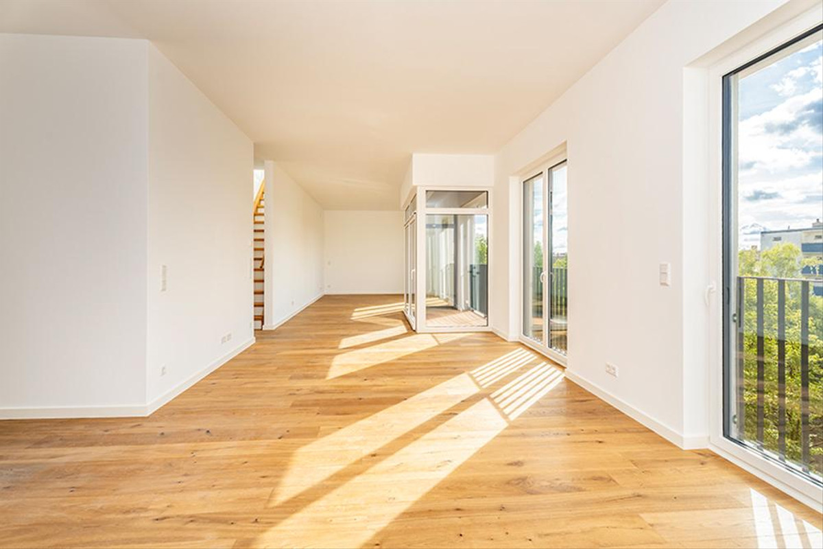 All apartments have sun-drenched outdoor areas with a fantastic view over Berlin: loggias, walk-out balconies and roof terraces. The interior design of the penthouse apartments also corresponds to this high standard. High-quality wood-aluminum insulating glass windows and real wood parquet skilfully create an elegant framework for your personal furnishing style.