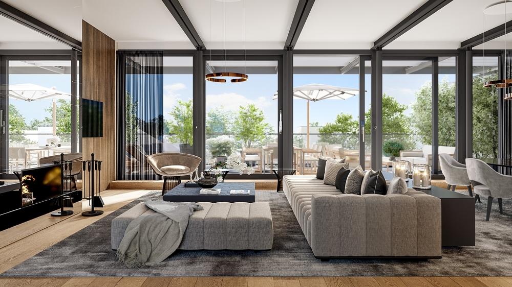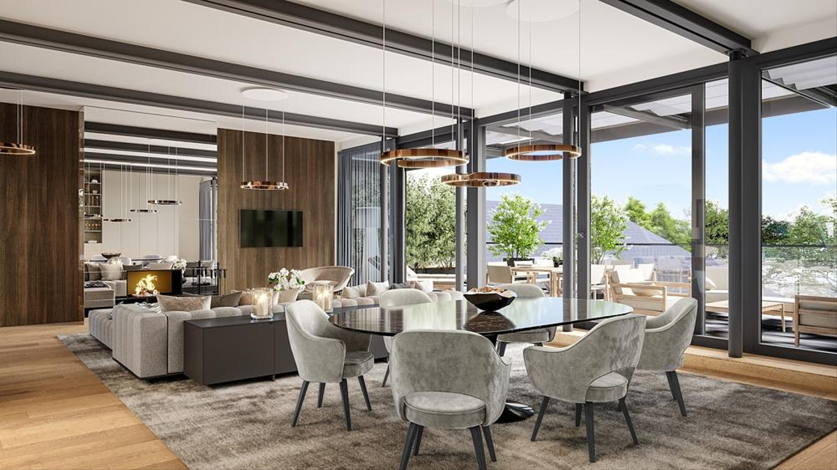 The Sophienterrassen in Hamburg combine modern elegance with sophisticated luxury in the interplay of parkland and urban culture. The privilege of living in this place was previously shared by wealthy Hamburg merchant families, whose magnificent villas served as a benchmark and orientation for FRANKONIA Eurobau. The city quarter today includes an office ensemble, townhouses, city villas, the SOPHIE at Harvestehuder Stieg 24a and the entrance to the Sophienterrassen, the listed SOPHIENPALAIS. The crowning glory here is a town penthouse that is unparalleled in terms of space, views and comfort.