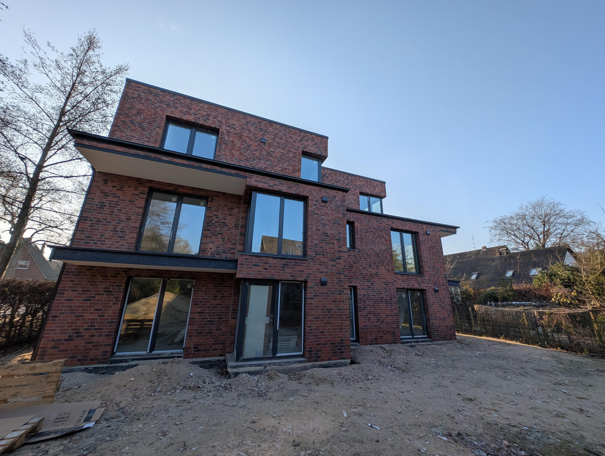 The surrounding area, characterized by single-family homes, is considered one of Hamburg’s most desirable neighborhoods. Nearby highlights include Niendorfer Gehege park, the Bondenwald swimming pool, and the Tibarg Center. Here, you live amidst nature while still close to the heart of the city—in a property that is not mass-produced, but built “brick by brick.”