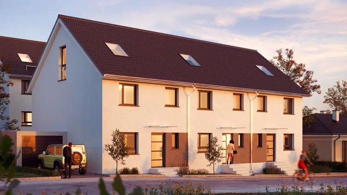 Modernes Reiheneckhaus (schlüsselfertig), auf real geteiltem Grundstück. Überdurchschnittliche Hausbreite (6 Meter), KfW 40 Energie Effizienzstandard, mit günstigem Förderkredit.