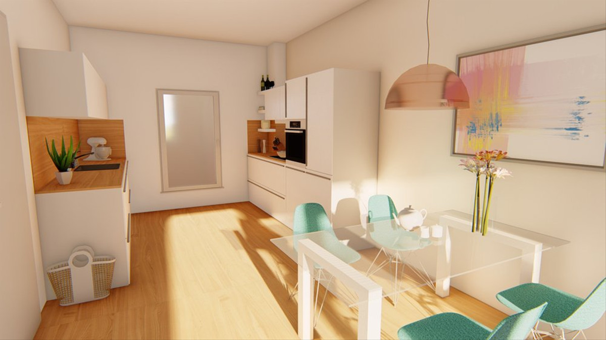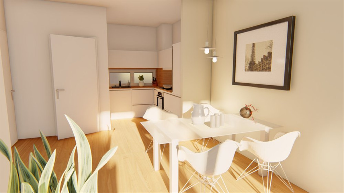 All apartments are outfitted to a high standard, featuring underfloor heating, floor-level showers and parquet flooring. Gable-side windows receive functional, stylish sliding shutters, which provide additional sound insulation. Each floor can be easily reached with a passenger elevator. This comfortable residential package is rounded off with a video intercom system, while parking spaces (predominantly in carports) are available.