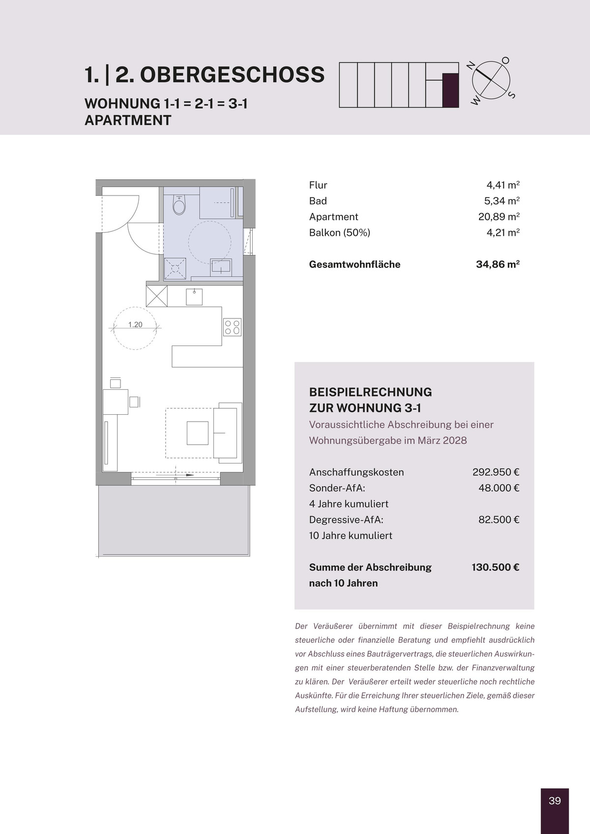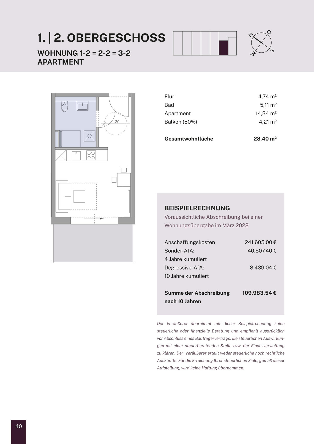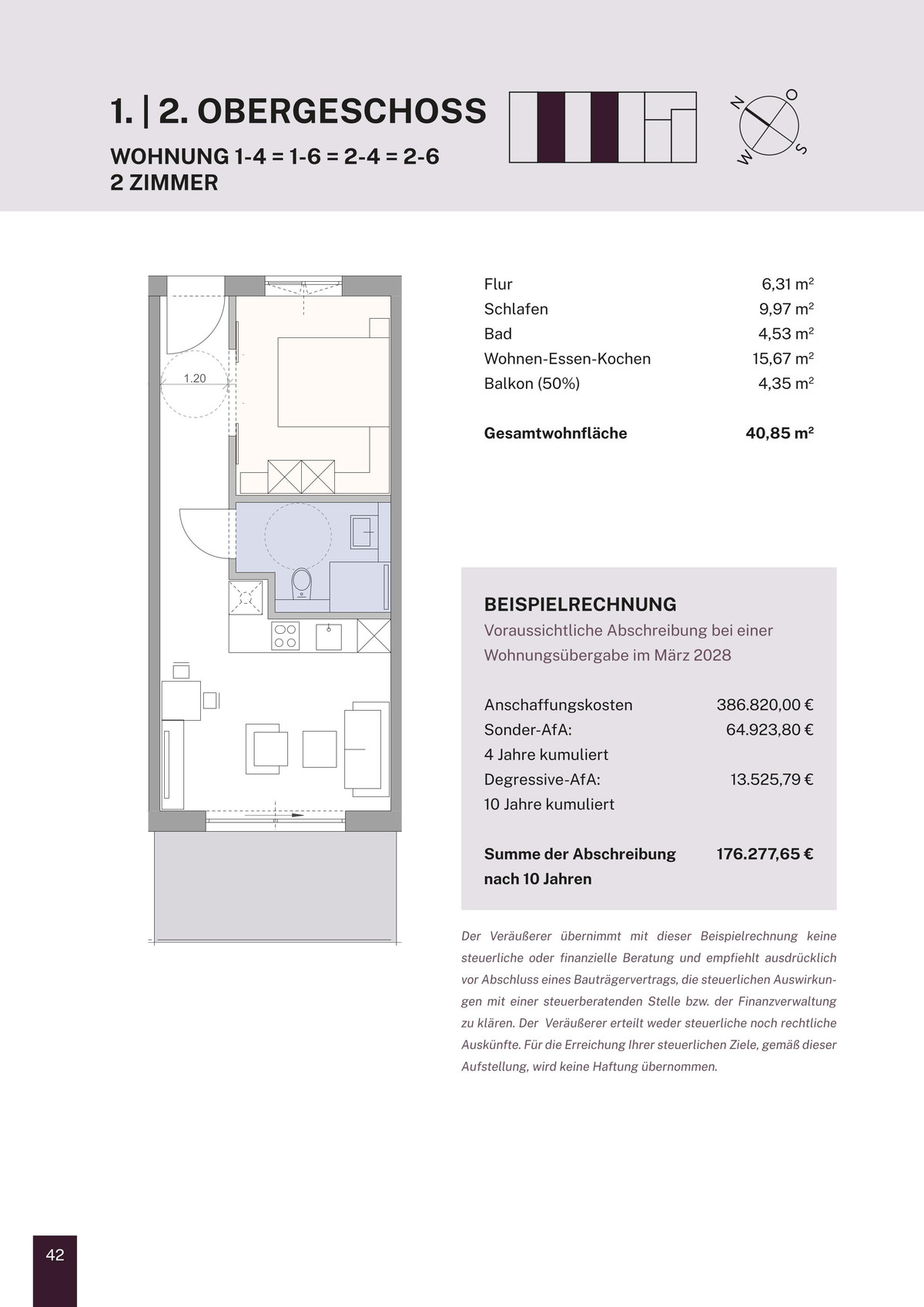Das bedeutet: Bereits nach vier Jahren sind rund 40 %, nach sechs Jahren etwa 60 % des Gebäudewerts steuerlich abgeschrieben - ein enormer Vorteil für alle, die in den kommenden Jahren hohe Einkünfte erzielen und gezielt Steuern sparen möchten.