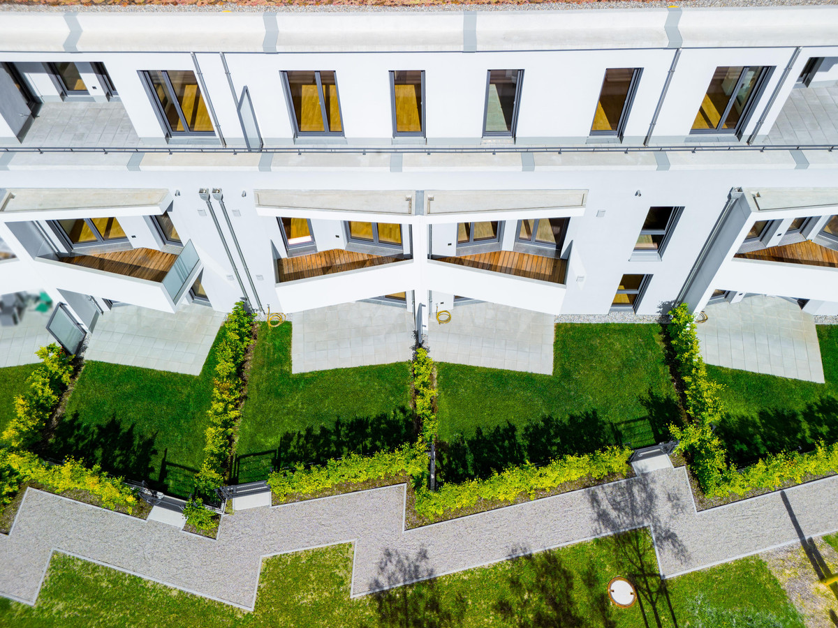 Clarity, tranquillity and space to breathe: the unusual but clear architecture offers its future residents modern design that reflects individuality. The innovative aesthetics of the condominiums creates with its urban-tidy flair and the unusual layout free spaces – for thinking, for living and for self-realisation. All condominiums have roof terraces, balconies or gardens through which plenty of sunlight falls into the interior of the rooms. Floor-to-ceiling windows additionally give a feeling of immediacy.