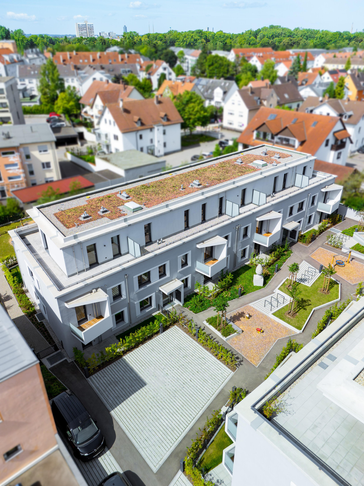 Through the unconventional architectural appearance and the variety of sizes and layouts, a unique, contemporary atmosphere results. The bright condominiums with their spacious balconies, roof terraces and gardens offer plenty of space for togetherness, relaxation, bustle and tranquillity. Openness and privacy exist here simultaneously in natural harmony and ensure high quality of stay both inside and outside.